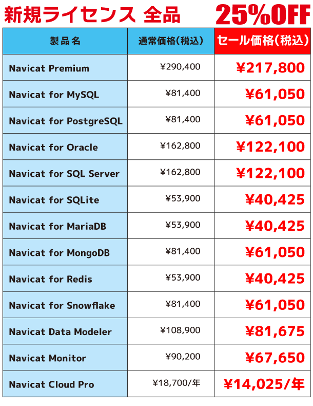 データベース管理ツール Navicat 割引キャンペーンの開催が決定しました!